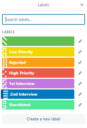 Let’s say you have screened and shortlisted a resume for hiring manager review. You can create a label as shortlisted and add it to the resume card.